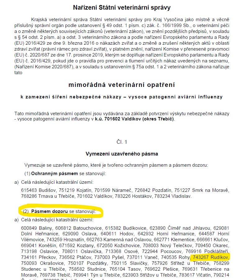 Nařízení Státní veterinární správy 12.11.2025 10:19 soupis chovatelů v pásmu dozoru proveďte prosím zde v tomto formuláři do 18. 11. 2025 : soupis chovatelů v pásmu dozoru proveďte prosím zde v tomto formuláři do 18. 11. 2025 :